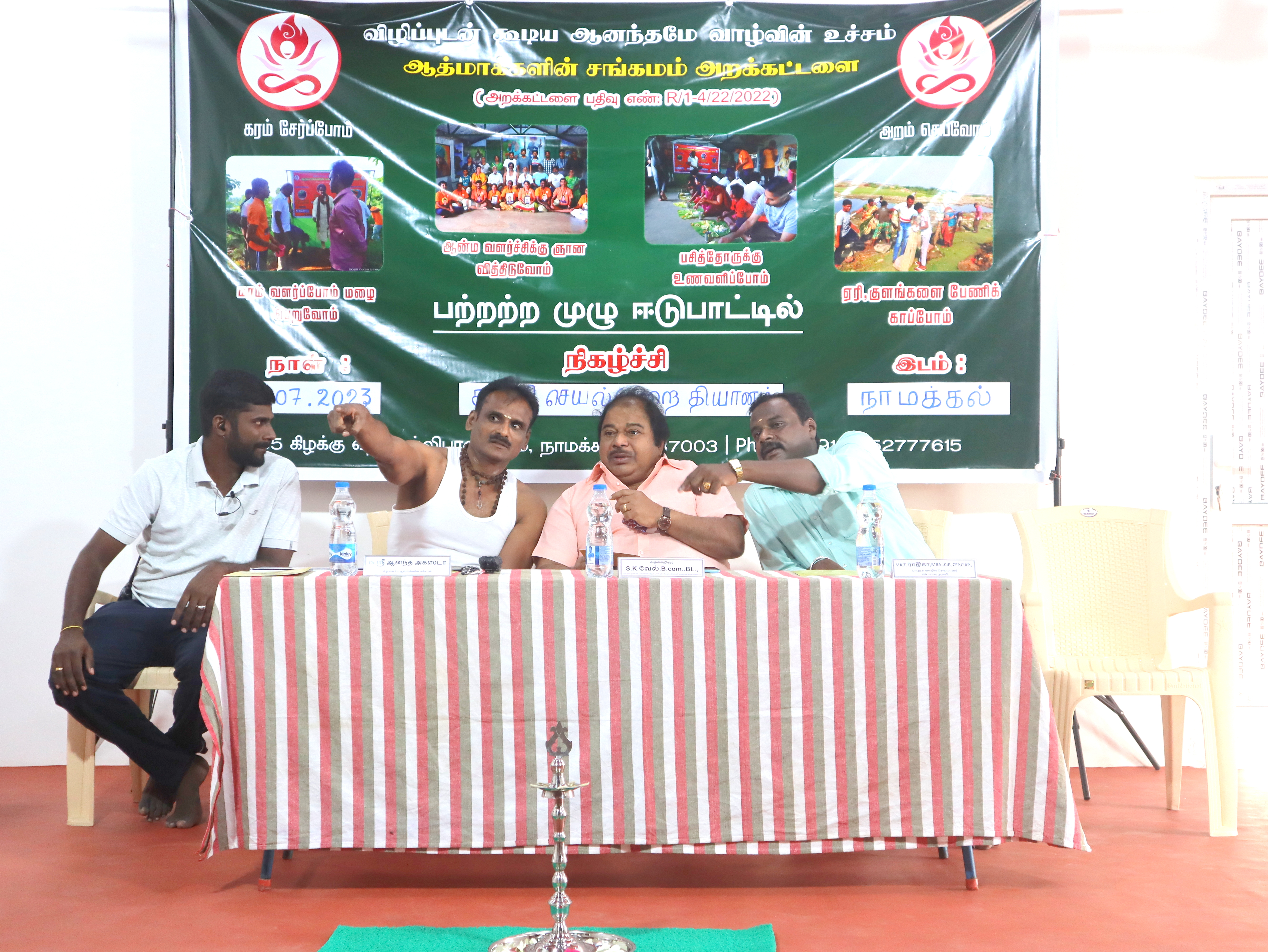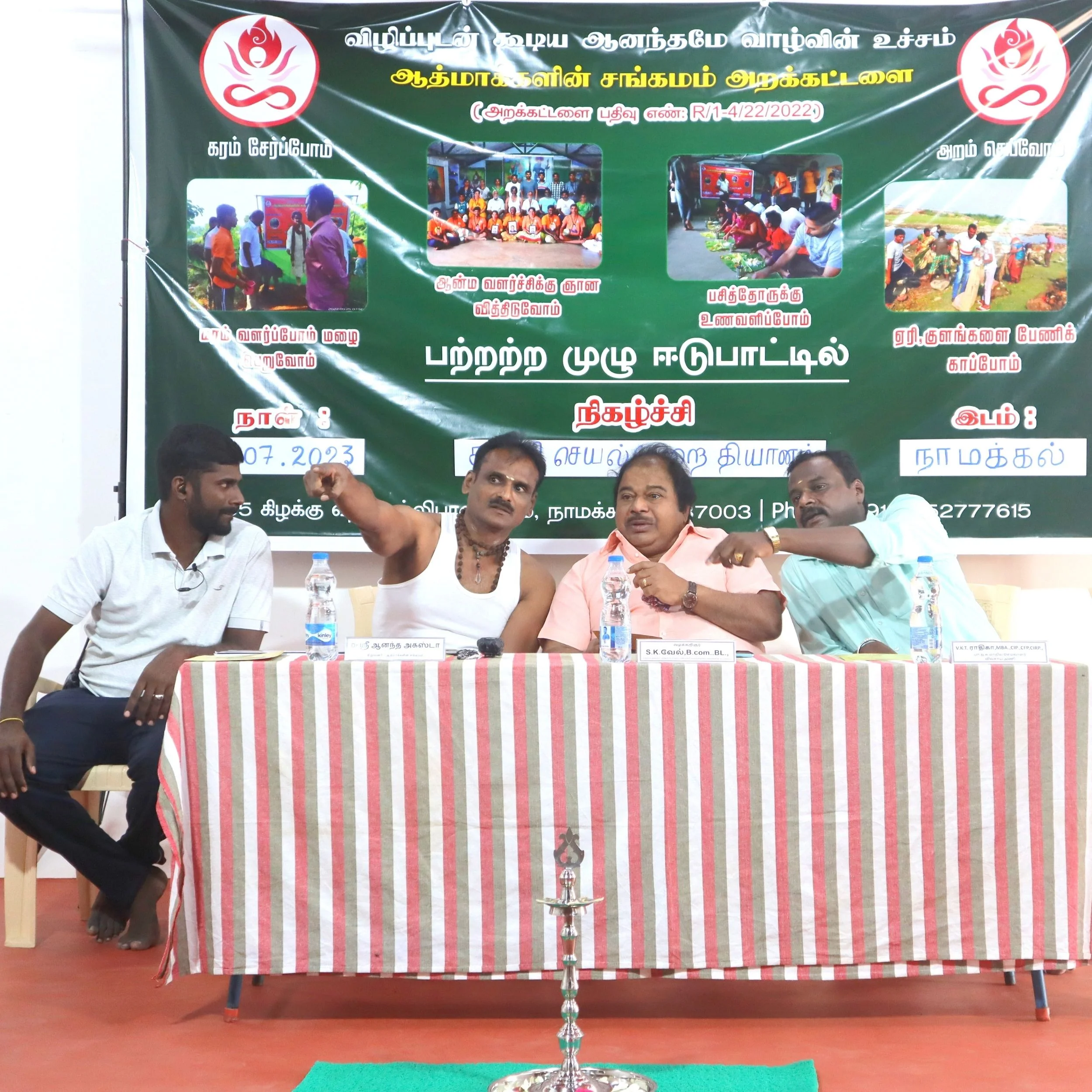 Sri Anandha Agasta is a spiritual guide who is teaching meditation techniques to the public to attain the state of blissfulness and consciousness. Also, he is the founder of ‘Athmakalin Sangamam’, which is a non-profit holistic organization run by karma yogis/spiritual gurus. We are focusing on teaching various meditation techniques and are also involved in societal activities like educating the children, planting trees to safeguard our environment, and so on. Your contribution to this spiritual trust will throw a ray of light into many lives and help you attain divine energy. Donate to us through online or offline payment or any offerings that would benefit the trust in the long run and be a part of impacting others for the state of enlightenment.